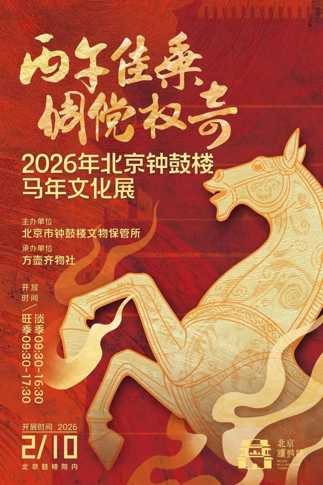 2026年为丙午马年,由北京市钟鼓楼文物保管所主办、方壶齐物社承办的“丙午佳乘,倜傥权奇”马年文化展将于2月10日在北京鼓楼院内正式亮相!