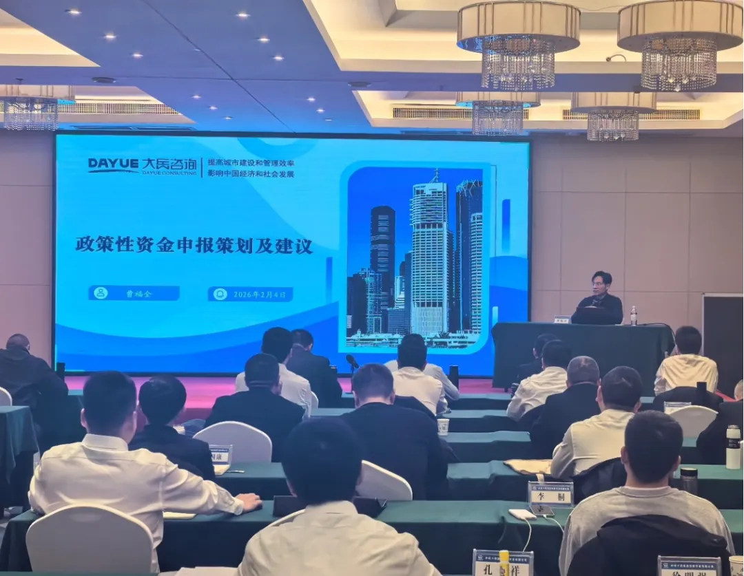 2026年2月4日,大岳咨询受邀为中铁十局投资公司开展专题培训,大岳咨询董事总经理曹福全、高级经理郭新超、朱海航、潘杰受邀参加。本次培训紧密围绕国家及地方最新出台的基础设施投融资政策导向,从向上资金申请、基础设施投融资市场分析、特许经营政策解读、城市更新运作模式等方面做了分享。