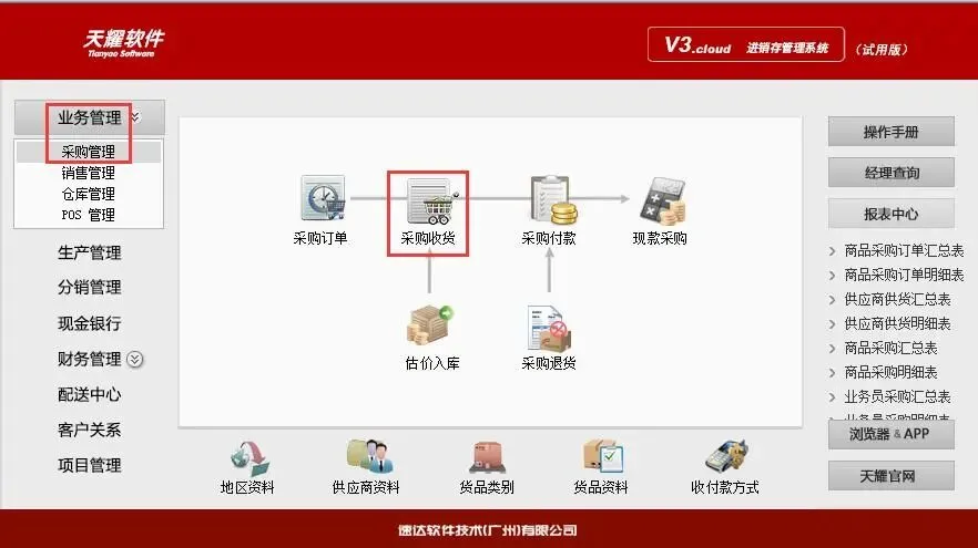 点击:业务管理中的采购管理——采购收货