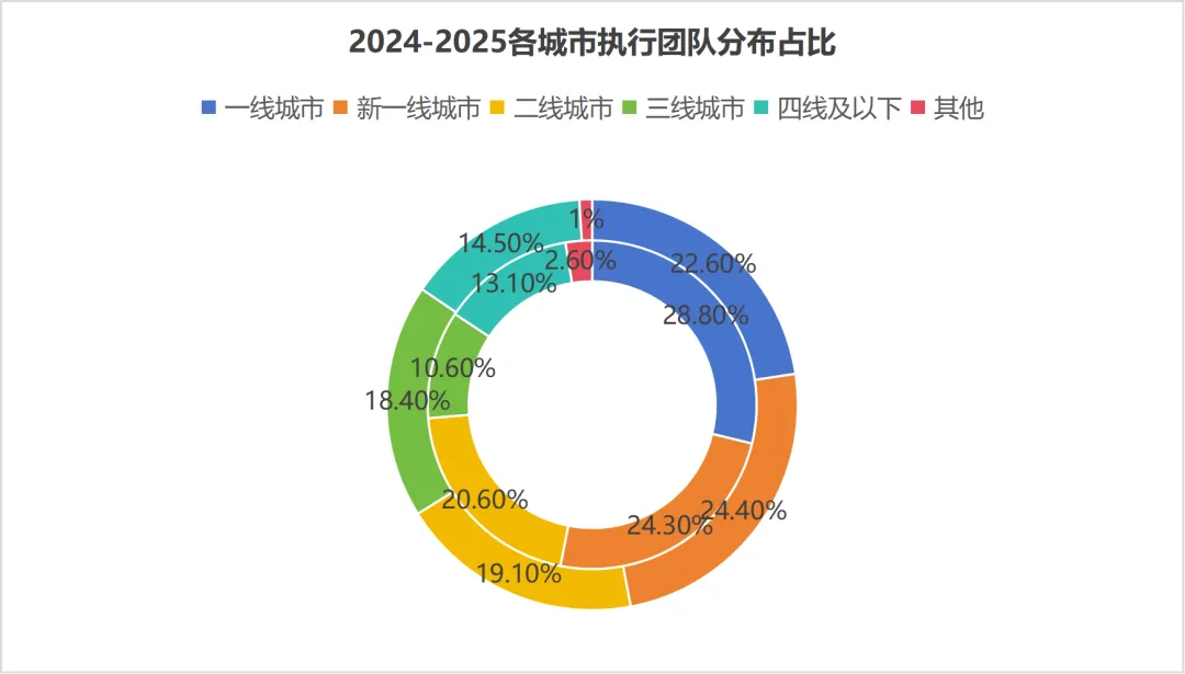 线下执行团队的地域分布与区域活动热度高度匹配,一线、新一线城市的执行团队占比达 47%,保障了核心市场的服务供给;同时,2025年三线及以下城市执行团队数量占比达到33%,标志着下沉市场需求逐渐增大,吸引影像人才驻扎,形成“市场需求拉动人才集聚,人才供给繁荣区域市场”的正向循环。