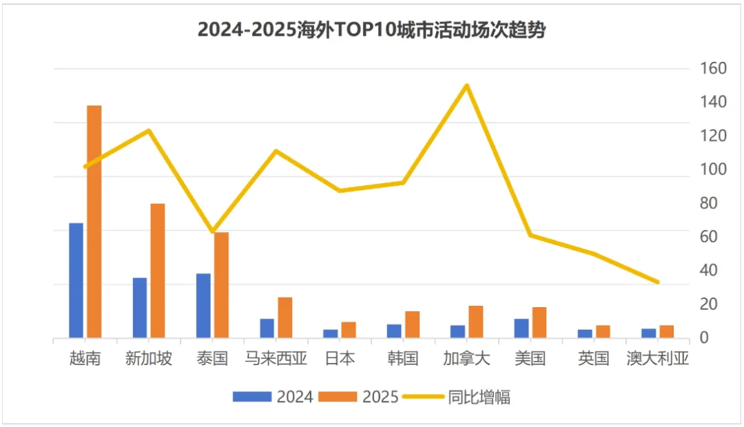 2025年映目平台海外活动场次同比增长94%,服务覆盖东南亚、欧洲、北美等多个地区。这表明伴随中国企业出海加速、跨境商务交流日益频繁,海外市场对专业化会议会展服务的需求逐步显现。