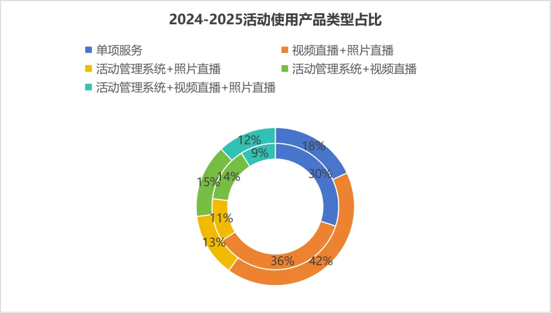 2025年,会议会展行业“单点服务”模式增长放缓,多产品融合使用成为显著趋势。数据显示,同时使用“视频直播+照片直播”的活动占比达42%,较2024年提升16个百分点;采用“活动管理系统+照片/视频直播”的活动占比达28%,同比提升12个百分点。这种融合需求背后,是活动主办方对全流程数字化协同的追求,希望通过一体化解决方案,实现从活动报名、现场签到到内容传播的无缝衔接,提升组织效率与参与者体验。