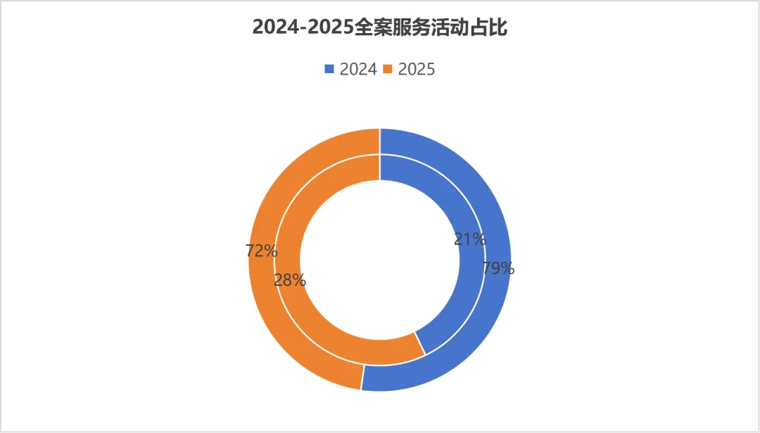 2025年映目平台提供全案服务的活动数量占总活动数的比例达28%,同比增长33%。全案服务需求持续增加,越来越多的主办方倾向于选择具备综合服务能力的合作伙伴,将活动全流程交由专业团队统筹,自身聚焦核心业务,这一趋势推动行业从“技术服务商”向“全案解决方案提供商”转型。