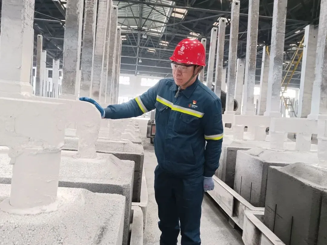 【人物简介】马利,1988年2月出生,中共党员,现任青铜峡分公司组装车间生产二班班长。自2007年从部队转业到青铜峡分公司以来,马利扎根阳极组装生产一线,从一名普通的工人做起,深耕组装工艺,凭借扎实的实操经验和肯吃苦的劲头不断成长,带领团队攻克多项生产瓶颈,大幅提升了班组作业效率与安全系数,先后获评青铜峡分公司2024年度劳动模范和铝电公司2025年度先进工作者。清晨7点,在青铜峡分公司阳极组装车间里,只有设备运转的低鸣和偶尔传来的金属碰撞声。生产二班班长马利握着手电筒,蹲在新阳极输送链条旁,目光扫过齿轮与链条的啮合处,眉头微微皱起……这已经是他今天第三次停下来检查这台设备了。刚到组装车间时,马利也曾像今天这样蹲在设备旁,只是那时他的手里还攥着一本翻得卷边的《阳极组装工艺流程》。“到最艰苦的地方去”,当年这句简单的承诺,让他在这条组装线上“钉”了10多年。如今,他早已不是那个对着组装工艺反复琢磨的新手,而是车间里人人信服的“马班”。2025年初春,组装车间的浇铸质量预警打破了生产线的平静。看着工作群里一张张不合格组装块的照片,马利在班前会上把自己的巡检记录本“啪”地拍在桌上:“从今天起,每一块组装块我都要检查过才能下线。”图为马利每天早上到库区检查组装块浇铸质量