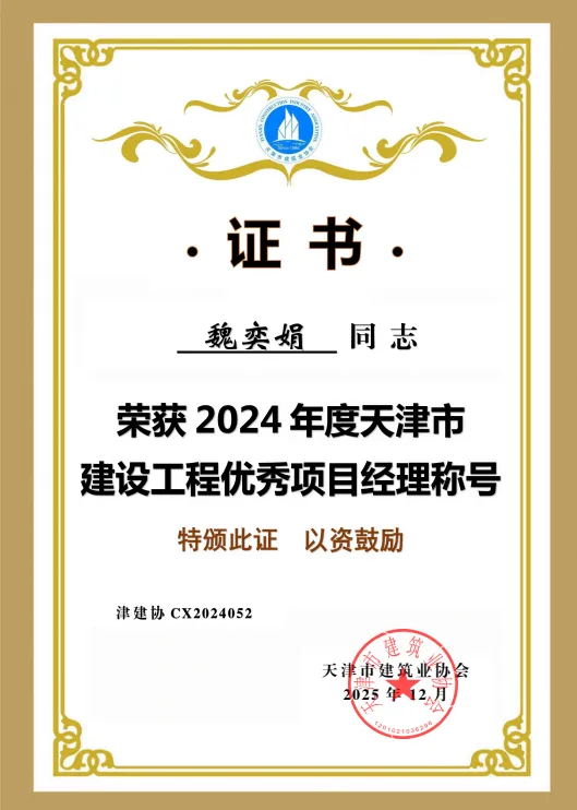 近日,天津市建筑业协会公布了“2024年度天津市建设行业诚信企业、诚信项目经理”评定结果,天津城建集团有限公司(以下简称公司)凭借卓越的履约能力和良好的市场信誉,荣获“2024年度天津市建设行业诚信企业”称号,魏奕娟同志被评为“2024年度天津市建设行业优秀项目经理”。同时,公司顺利通过“2025年度建筑业AAA级信用企业”复审。