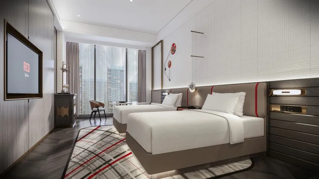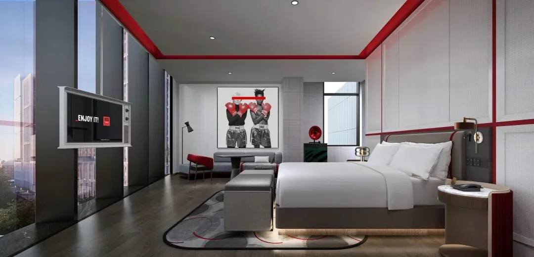 西安奥体中心丽芮酒店,是丽笙酒店集团旗下高端生活方式酒店品牌。酒店设计以红色为灵感,摒弃传统酒店的程式化布局,将长安运动“绘”设计主线与西安本土文化、现代艺术完美融合,有别于传统模式化的商务酒店,丽芮提倡轻松灵活的服务理念,拒绝冰冷的既有规则,热情拥抱源于生活的艺术创作,缔造人与空间的舒适链接。