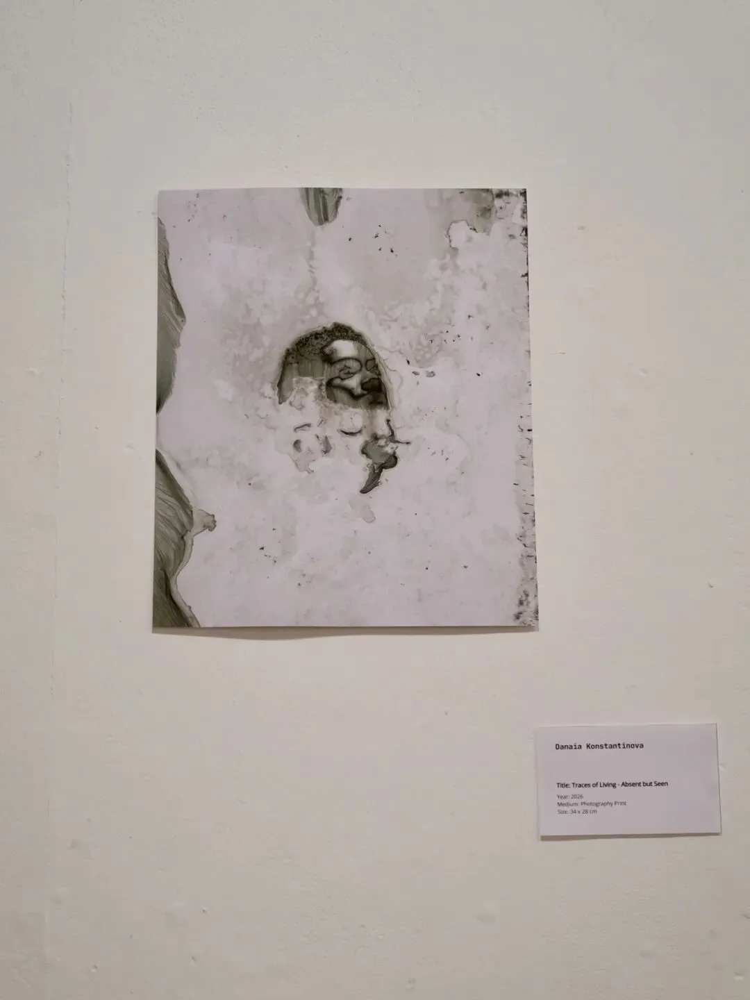 在《Absent but Seen》中,Danaia Konstantinova 通过摩丹奇法直接介入摄影表面,使影像发生溶解与破坏。缺席在此不再是被遮蔽的内容,而是以物质性的方式显现,承载着早已消散却仍在影响当下的关系与记忆。