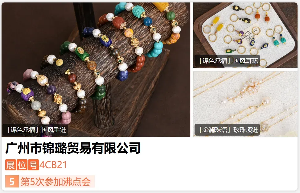 广州市锦璐贸易有限公司于2015年成立,作为资 深的以手工饰品为主的外贸公司,有着强大的独立自主开发能力,有条不紊的生产团队,优秀的的产品质量,严谨的质检标准等等,在过去多年与国外众多知 名品牌合作中汲取了丰富的经验,熟悉各渠道的开发与配合工作,擅长打造各个平台的爆款,抓住消费者的购买欲望。锦璐贸易每年参加香港国际珠宝展2-3次,在2024年作为云上饰品的供货商之一,在多场直播中皆取得了优异的成绩-展位号:4CX07-
