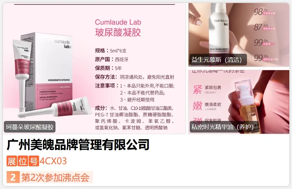 青木科技旗下聚焦女性健康美丽的品牌管理公司。我们深耕女性需求领域,旗下有三大品牌:珂蔓朵(Cumlaude Lab):高端女性私护品牌,2021年引进后登顶天猫私护榜单T0P 1,与北大医学部合作发布行业白皮书;意卡莉(ZUCCARI):意大利自然功能营养品牌,主打美容抗衰、身材管理。-展位号:4DH21-
