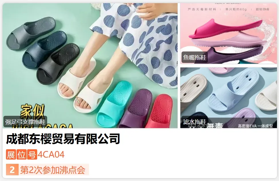 家似品牌源头工厂,专注拖鞋领域20年,集研发/生产/销售于一体,日均产能5600双,仓储1500平,合作客户在公域平台年销超50万双。★ 品牌实行双线布局:既为大牌代工生产,又是线下批发市场头部供应商,产品已进驻成都「王府井」「伊藤洋华堂」等标杆商场,为很多品牌贴牌(包括一些公域头部品牌)-展位号:4CB02-