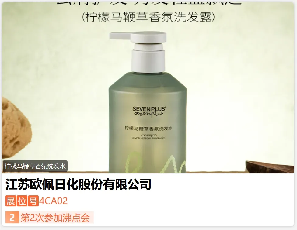 江苏欧佩日化股份有限公司-高端洗护用品品牌解决方案服务商。工厂占地面积100+亩,提供头发&身体护理/个人护理/空间香氛/儿童系列产品/周边配套产品及伴手礼等,欧佩资质与证书秉承标准化生产理念,取得了一系列的权威认证,拥有ISO9001、GMPC、ISO22716、SEDEX、ECO CERT、FDA、FSC、GRS等35个工厂和产品认证证书,确保产品品质合法合规。-展位号:4CX05-