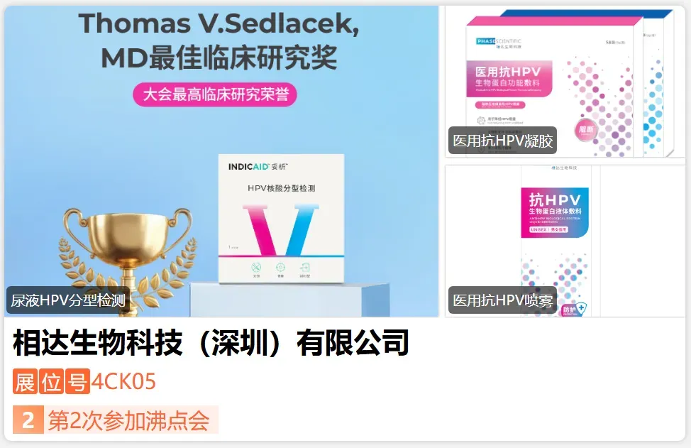 相达生物科技源自美国UCLA,总部设于香港。公司拥有专利技术,专注开发创新两性传染病及癌症检测产品。2025年完成2.4亿A轮融资。同年入选《福布斯亚洲》“2025年值得关注的100家企业”;斩获ASCCP全球权威女性健康大会临床摘要奖。相达为中国自取样宫颈癌筛查研讨会主办方,尿液检测技术获妇科泰斗高度认可。-展位号:4DH01-