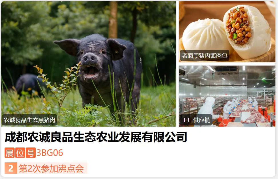 农诚良品(全称:成都农诚良品生态农业发展有限公司),创立于2019年,是一家专注于高品质黑猪养殖、屠宰、生产,生态农业开发与销售的现代化农业企业。我们秉持“全产业链一体化”的经营模式,严格把控从猪种优选、山林散养、标准化屠宰、精细加工到终端销售的每一个环节,旨在为中国家庭提供一份源头可溯、品质可信、健康美味的生态黑猪肉产品。农诚良品做到真诚链接农场与餐桌,匠心守护天然良品,旨在把健康带给家人。-展位号:3BE17-