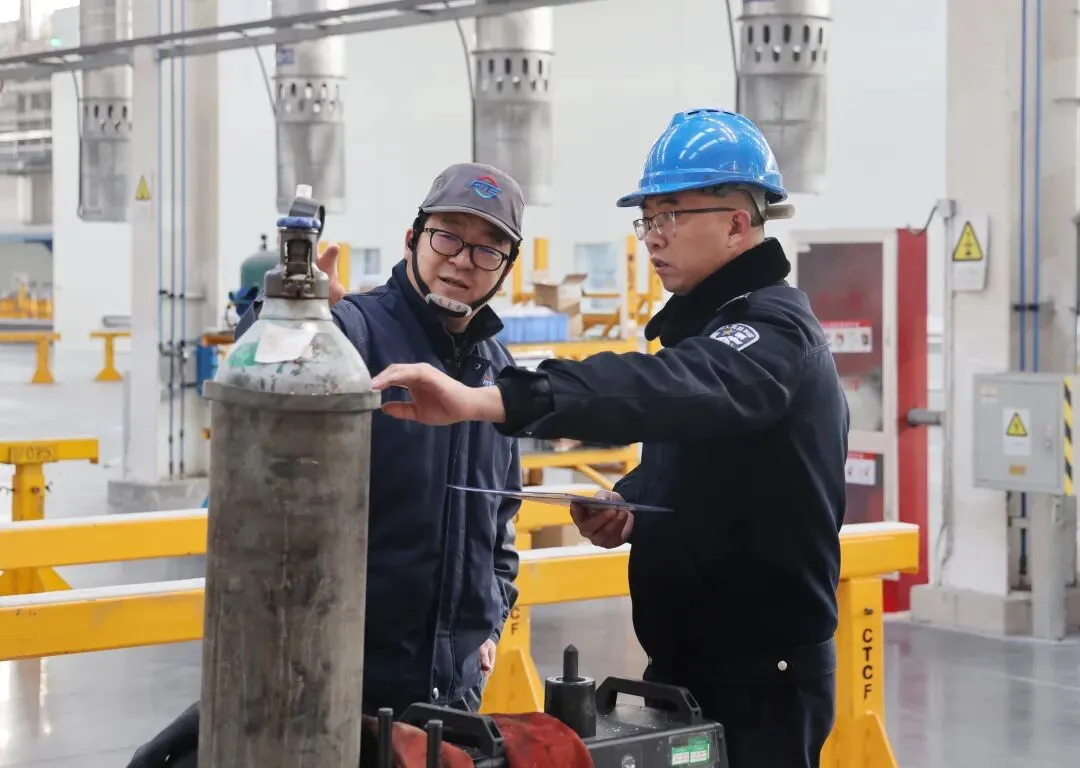 “除了日常接处警,我们更多思考地是如何服务企业、排查隐患。”派出所指导员薛志站在车体制造部车间里,声音沉稳。他和辅警郭静正仔细检查消防通道、查看危化品存放点,在涂装车间提醒通风防火,在组装区叮嘱大型设备操作规范。