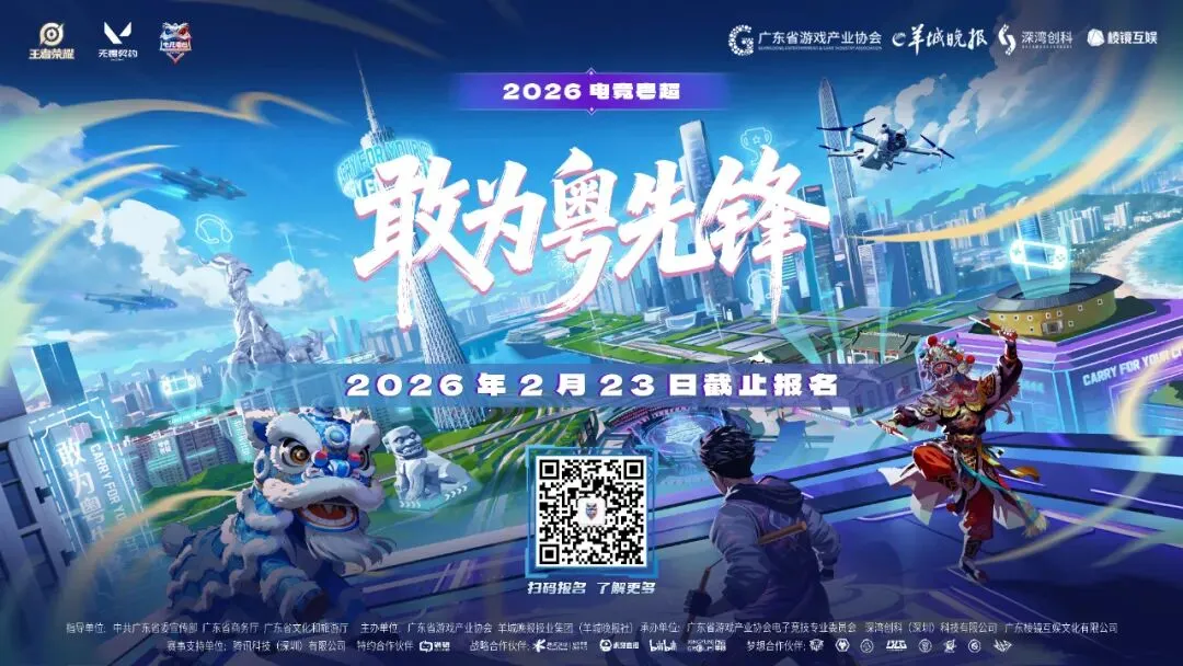 作为2026年广东十大全民竞赛活动之首,赛事获中共广东省委宣传部、广东省商务厅、广东省文旅厅联合指导,由广东省游戏产业协会与羊城晚报报业集团共同主办,多地市政府联动支持。依托官方媒体宣传及政府消费券联动,实现品牌与运营双向提升。