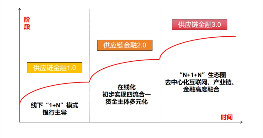 供应链金融从最初的 1.0 版本迭代至 2.0 版本,如今已迈入 3.0 发展阶段。