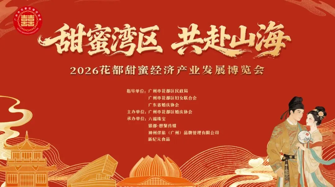 2月7日,粤港澳大湾区首场以“甜蜜”为主题的产业博览会——“甜蜜湾区·共赴山海”2026年花都甜蜜经济产业发展博览会,在广州融创茂主会场及广州施柏阁大观酒店分会场圆满举办。活动由花都区民政局、花都区妇女联合会、广东省婚庆协会指导,花都区婚庆协会主办,是花都系统布局甜蜜经济、整合产业链资源的重要平台,旨在推动花都打造粤港澳大湾区甜蜜经济新高地。