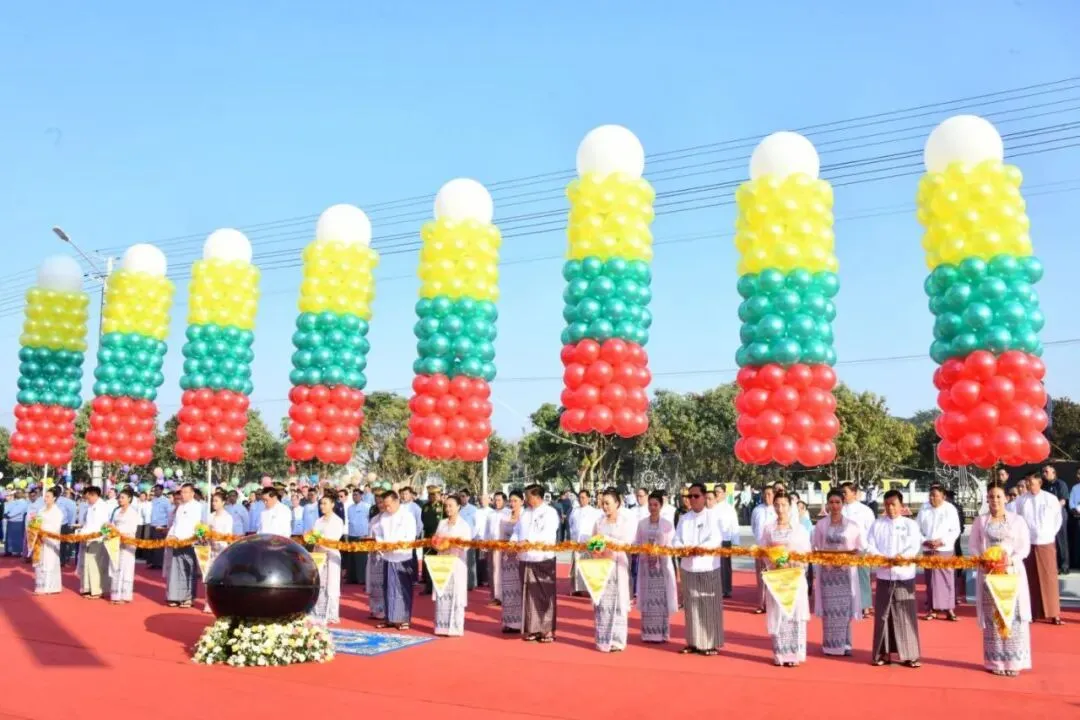 仪式由国家安全与和平稳定委员会副主席索温副大将、国家总理吴纽索以及联邦部长甘佐博士、吴拉莫、查理丹博士、吴齐绥和内比都委员会主席吴丹吞乌共同剪彩开幕,随后敏昂莱大将按下开幕式启动按钮。