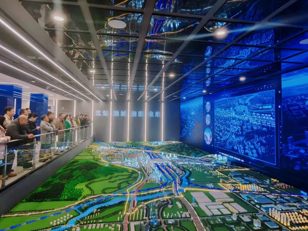 座谈会开始前,与会嘉宾集体参观南京北站规划沙盘,深入了解南京北站科技创新港的战略定位、产业布局与交通优势,实地感受枢纽经济区在服务国家“八纵八横”高铁网络、推动长三角一体化发展中的重要作用。