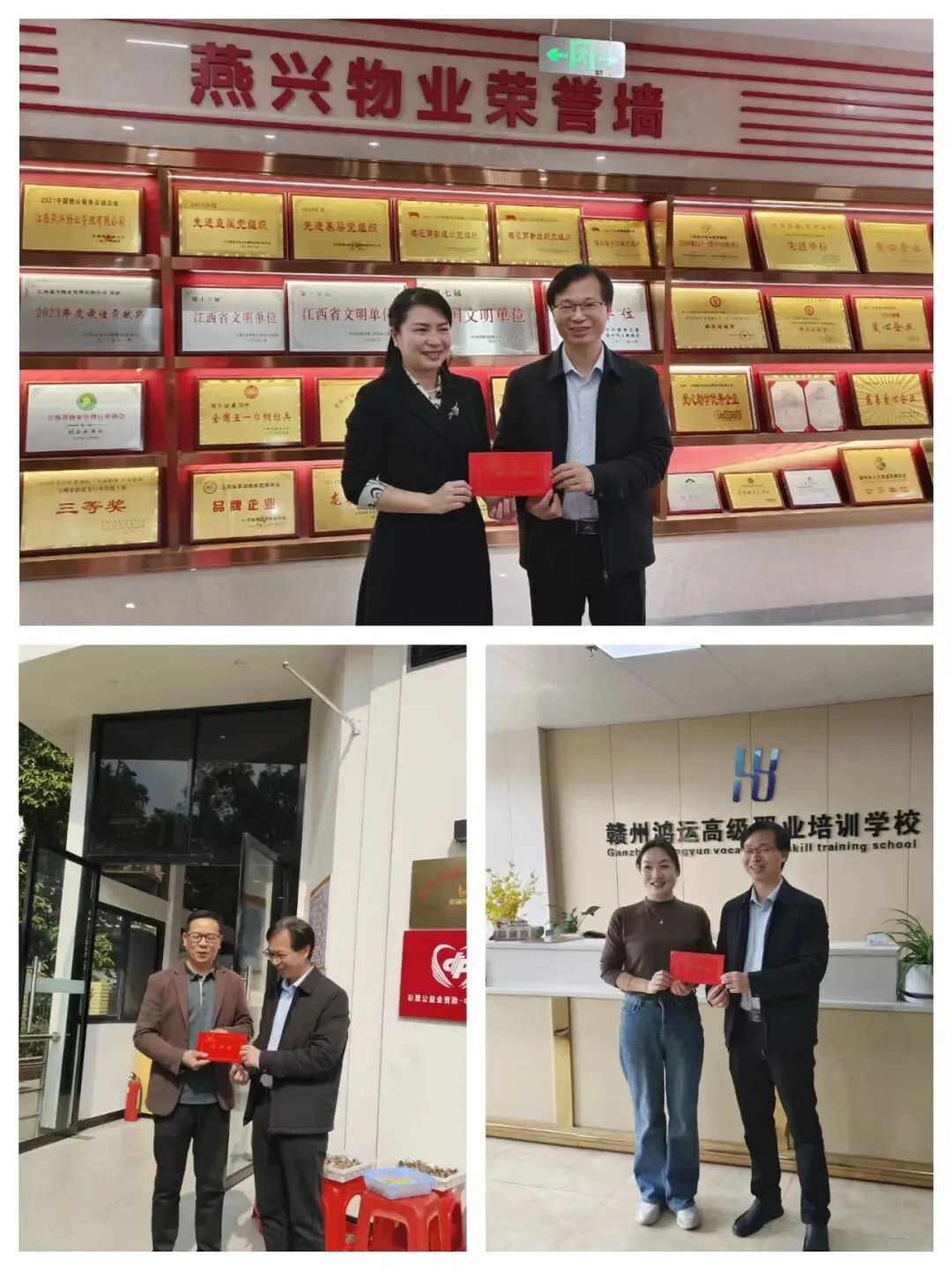 赣州市商务局商贸服务和市场体系建设科、市家协秘书处负责人与相关工作人陪同走访慰问。