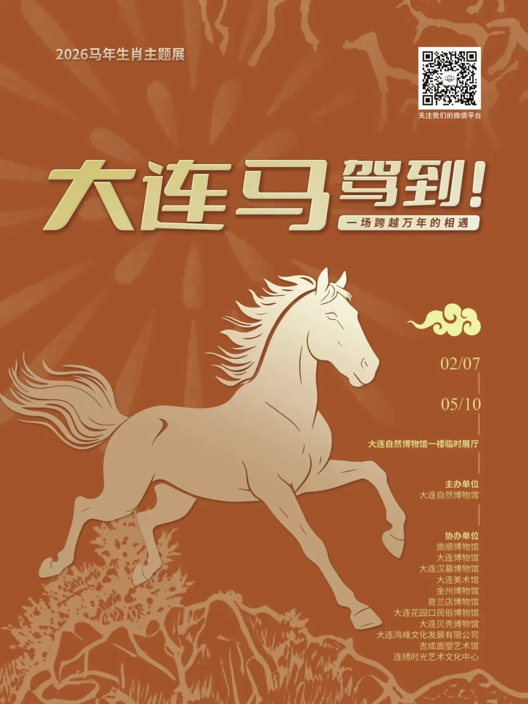 值此“十五五”规划启航之际,又逢生肖马年,这场展览不仅是一次文化的回溯,更是一场城市精神的唤醒。我们诚邀所有热爱大连的您,在这个春节,携家人朋友们一同走进博物馆,共赴这场等待了万年的约会。