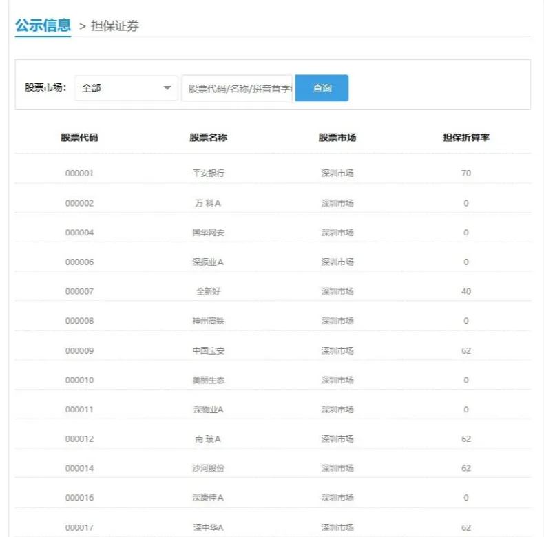 不在担保品池 → 无法用自有担保品资金买入,更无法融资买入 担保品池同时可查询折算率:融资额度 ≈ 持仓市值 × 折算率 券商官网一般会公示:标的证券池、可充抵保证金证券池及折算率