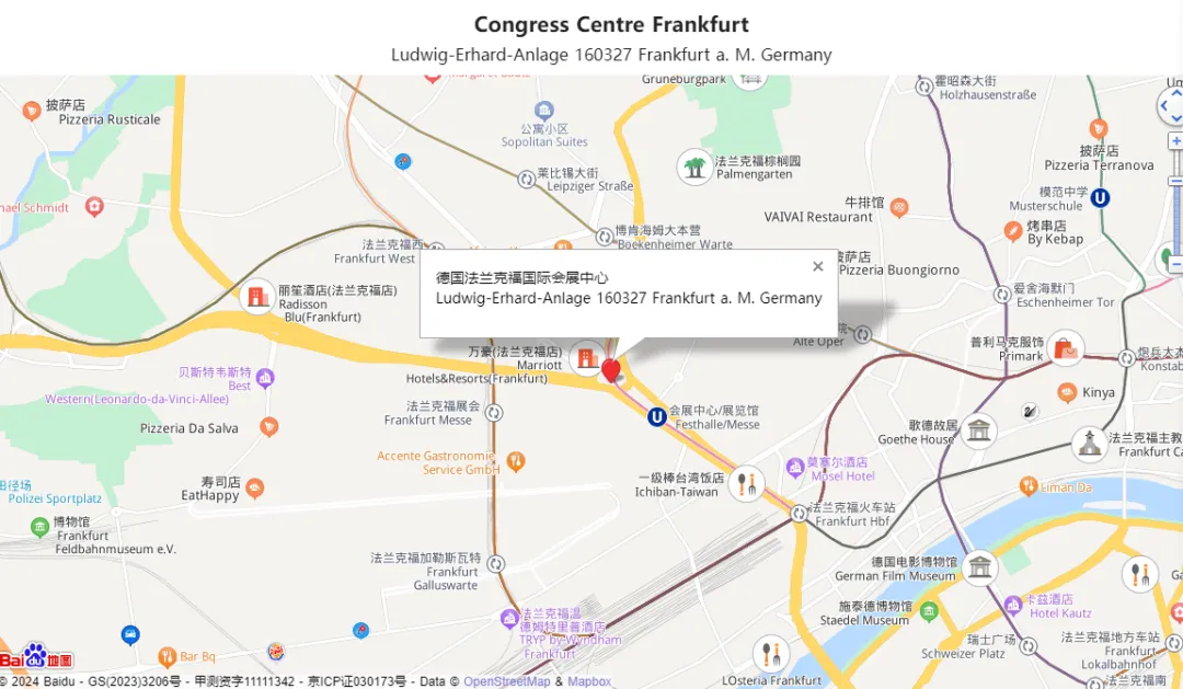 展会地点:德国法兰克福 Ludwig-Erhard-Anlage160327 Frankfurt a. M 法兰克福会展中心