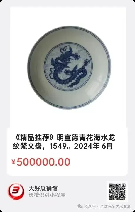 明宣德青花海水龙纹梵文盘,口径22.3底径13高5cm,2024年 6月 26日,经天好评审团评审,以7票优势荣登精品榜,获第132期天好海选精品。来源1549.V.