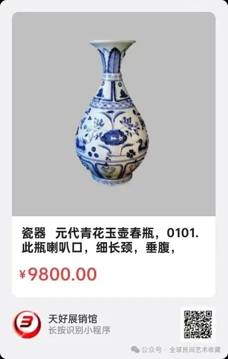 网络展销地址:《全球民间艺术收藏》《天好文化》,《天好展销馆》前二个微信公众号每期发布展讯,进《天好展销馆》购买。