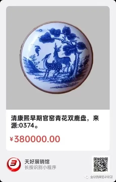 清康熙早期官窑青花双鹿盘,高4.5.ⅹ22.厘米.来源:0374。
