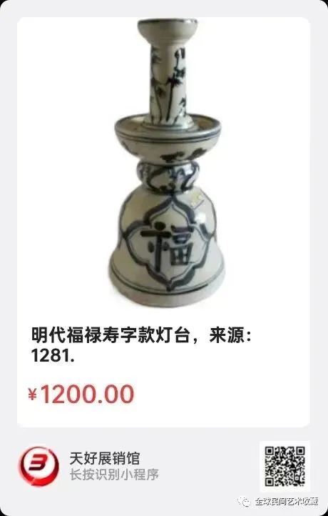 明代福禄寿字款灯台,高二三厘米,足径六厘米,来源:1281.