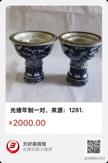 光绪年制一对,高12cm上口径12cm足径4cm,来源:1281.