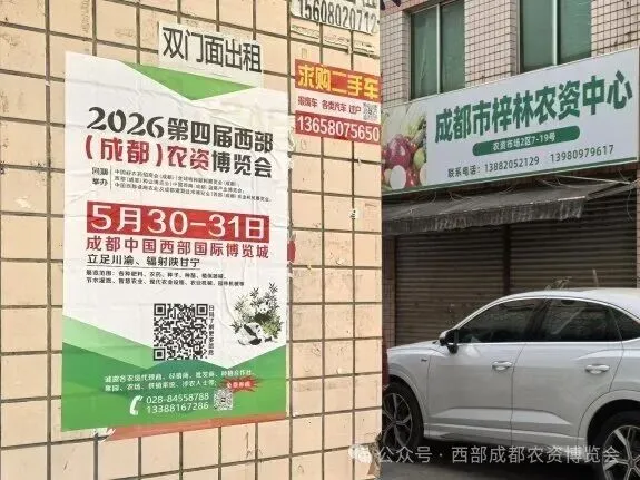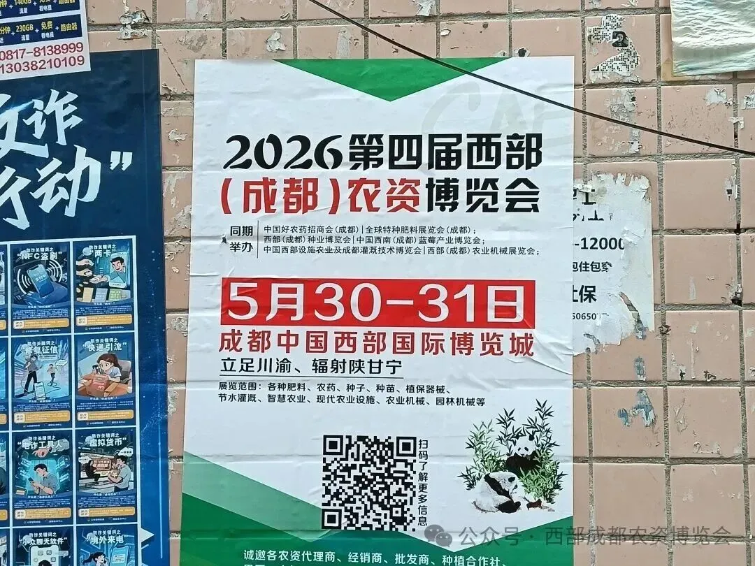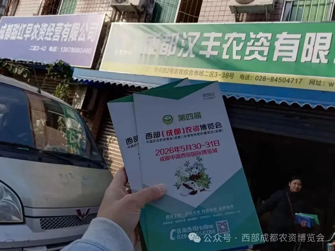 2026第四届西部(成都)农资博览会(简称:CAE2026)市场推广在已正式启动。为让更多行业同仁知晓盛会,地推团队奔赴成都及周边各大农资市场,张贴醒目海报、悬挂主题横幅、派发邀请函,用脚步丈量市场,用热忱传递资讯,为5月30-31日成都中国西部国际博览城的农资盛会预热升温!