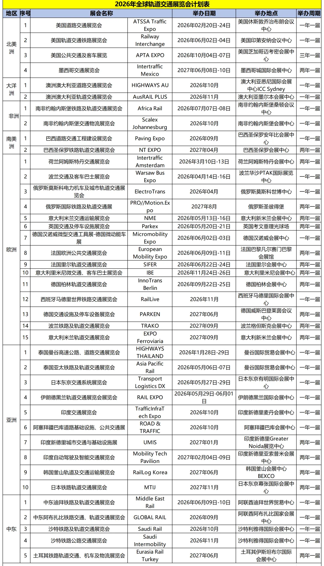 2026年全球轨道交通展览会计划表