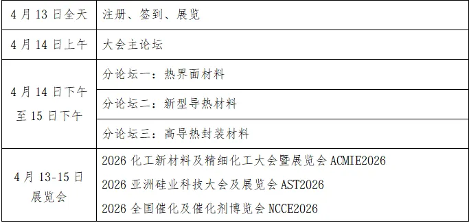 报名本会,可免费参加“2026亚洲硅业科技大会及展览会”、“2026全国催化及催化剂博览会”、“2026化工新材料及精细化工大会暨展览会”。活动共设20场主题研讨会,涵盖热管理材料、有机硅、高纯石英、气凝胶、液冷、表面活性剂、催化剂、辐射固化、电子胶、乙烯下游高端聚合物、特种工程塑料、丙烯酸及酯、甲基丙烯酸甲酯、半导体材料、氟材料、环氧树脂等重点方向,参会规模3000人,参加企业1500家、展示面积10000平米。具体通知如下:
