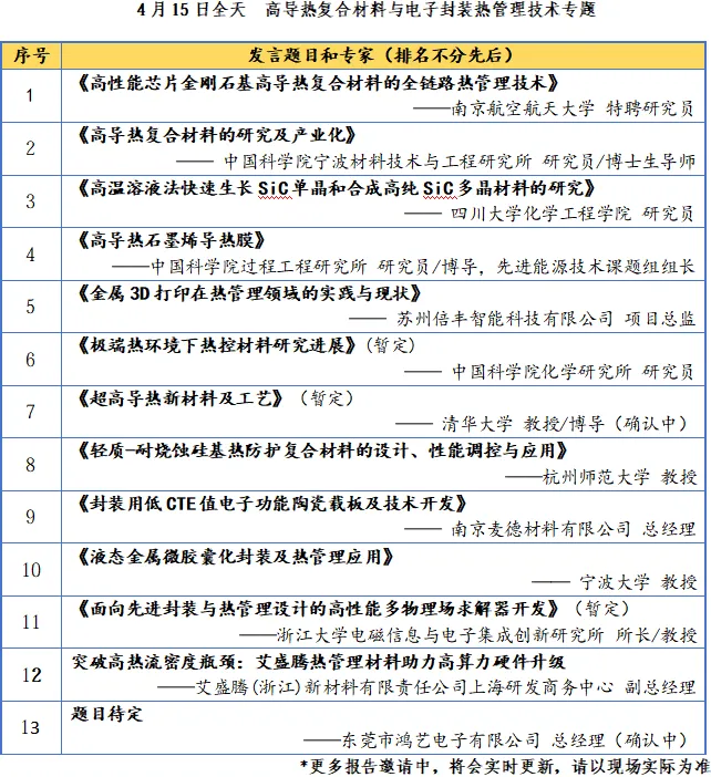 随着电子信息、新能源汽车、航空航天、高功率激光器等产业的飞速发展,高效散热已成为制约产品性能、可靠性及小型化、集成化发展的关键瓶颈。为应对这一挑战,推动热管理材料技术创新与产业融合,我院拟定于2026年4月13-15日在苏州举办“2026国际先进热管理材料技术交流会”。本会以“材料创新驱动热控未来”为主题,设置“热界面材料、新型导热材料、高导热封装材料”三大分论坛,聚焦行业痛点与前沿趋势,搭建专业交流对接平台。