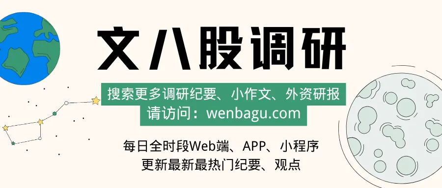 本纪要来自于网络,若纪要所属机构认为不便传播,请到【文八股调研纪要】公众号后台留言删除纪要!如若造成不便,请多包涵!
