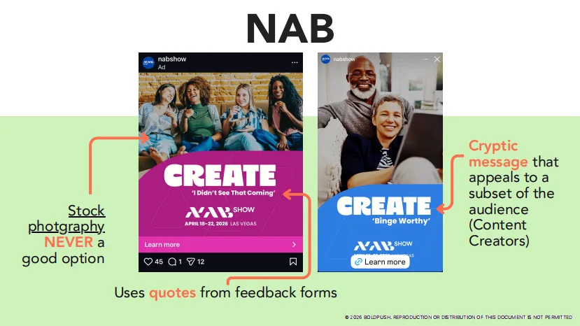 NAB(全美广播电视展)推了一组用语隐晦的广告:
