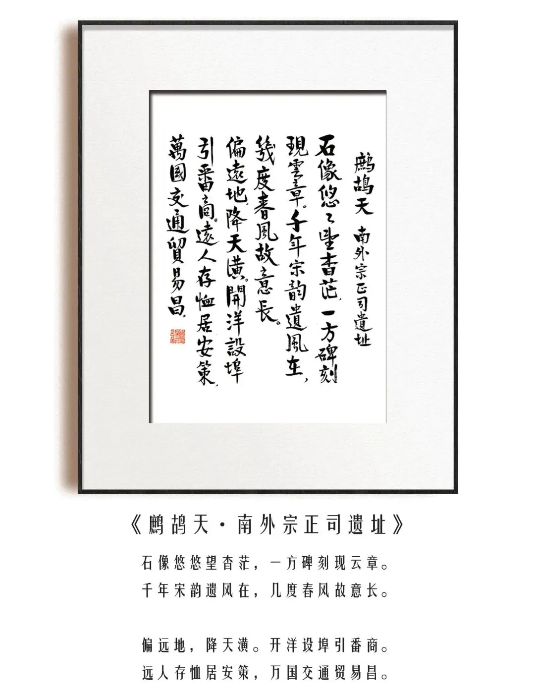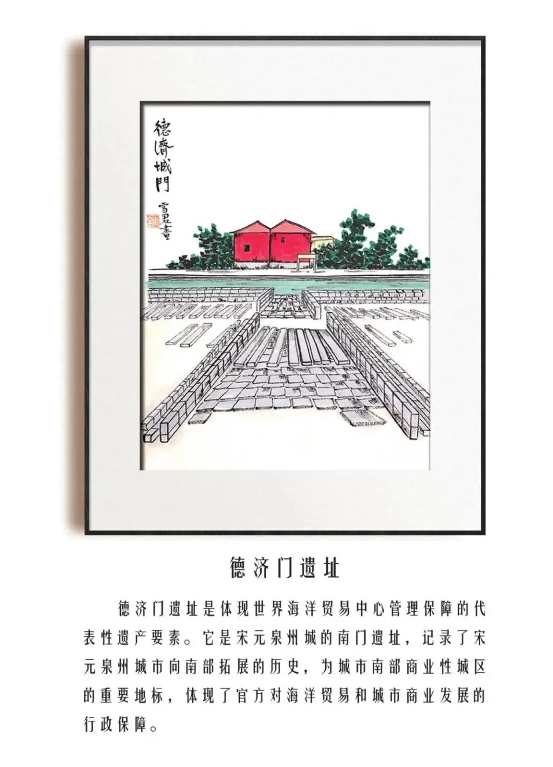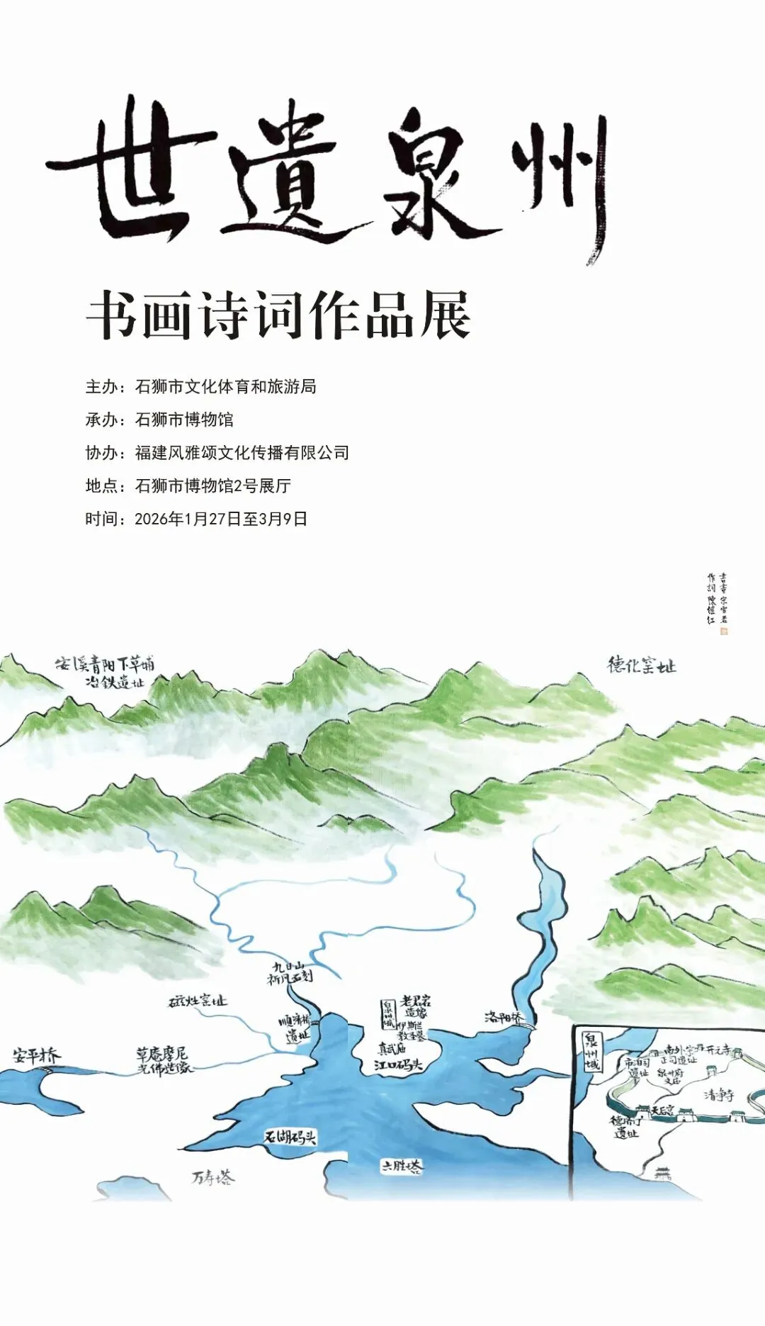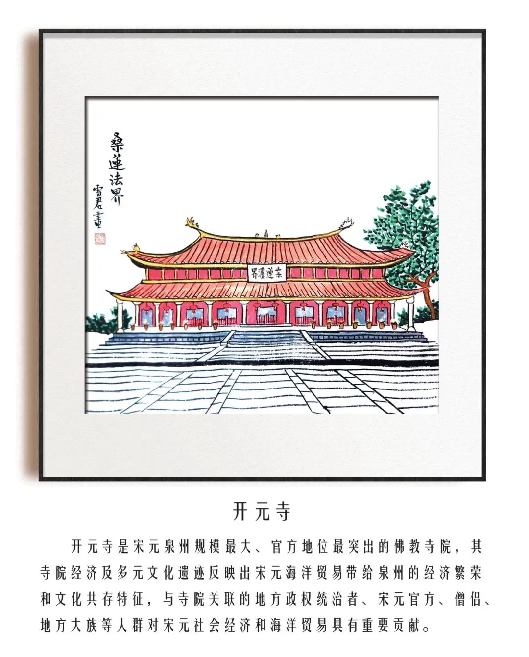 此次展览以丰子恺外孙宋雪君原创的泉州22个遗产点的书画作品为主要内容,配以陈继红(中华诗词学会会员、福建省诗词学会会员,福建省书法协会会员)的诗词进行展示。以讲好“宋元中国·海丝泉州”故事,传承和传播世遗文化,厚植文化自信。