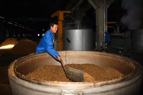 玉米、高粱、糯米、小麦、大米,精选这五种优质的粮食原料,按照一定的科学比例配置,先是破碎拌匀,然后加上窖池里取出来的酒糟,以及部分数量的糠壳,放进蒸锅里进行蒸馏。绿色的食品,长周期的发酵,微生物的培养,空气中适宜的温度和湿度,凝结成幽雅细腻的复合香气和绵甜净爽的口感