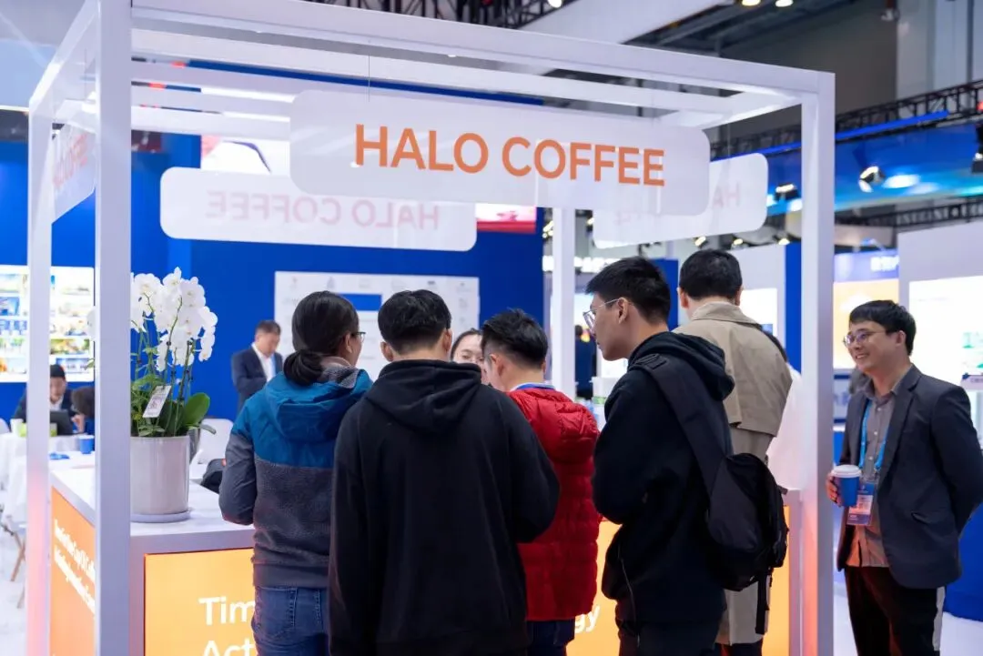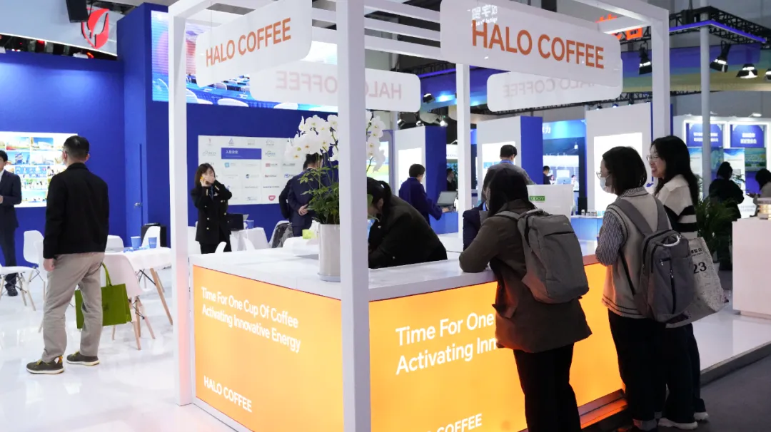展位上还特别设计有“Halo Coffee快闪咖啡店”,上面写着“一杯咖啡的时间,链接创新能量”,吸引了前来观展人的目光,纷纷驻足观看,一同品尝咖啡,深入交流。