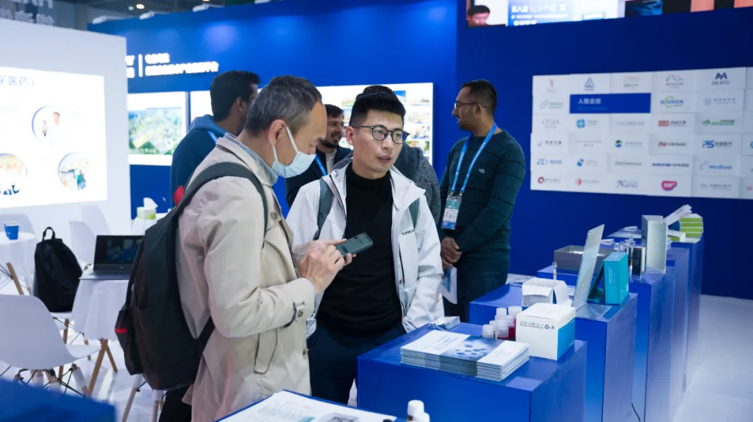 数字服务馆1B-09展位上,人头攒动,热闹非凡。众多来自全球顶尖科研机构的学者以及大型跨国医疗器械公司及前沿技术创新企业代表,齐聚而来,驻足参观,深度了解杭州传化科技城-欧美同学会海归小镇(杭州·数字医药)核心承载区的探索实践。