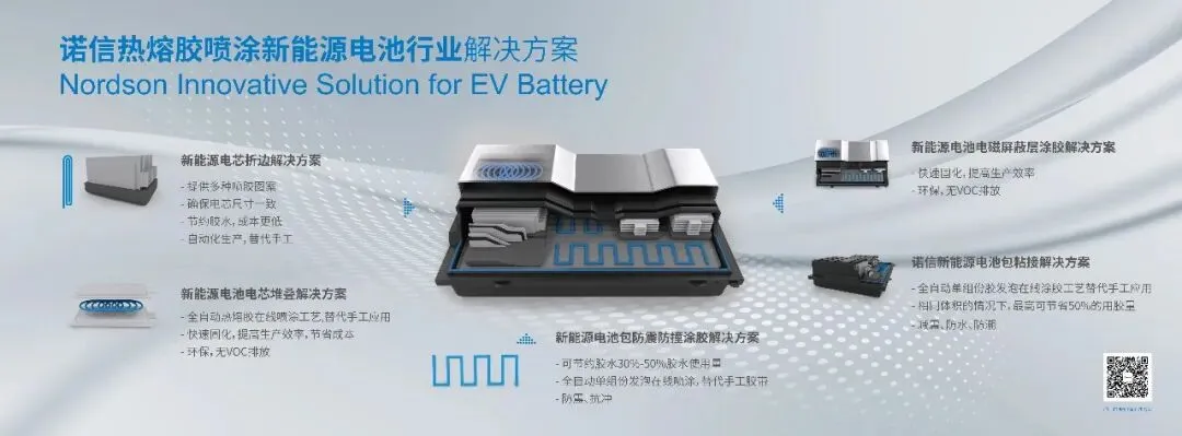 从Cell粘接到Pack密封,诺信以丰富的产品线和高水准的研发实力以及稳定的产品,为客户提供更高品质、更高效的完整的解决方案。