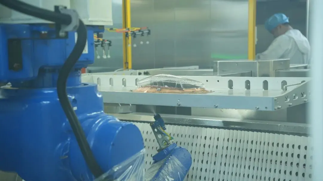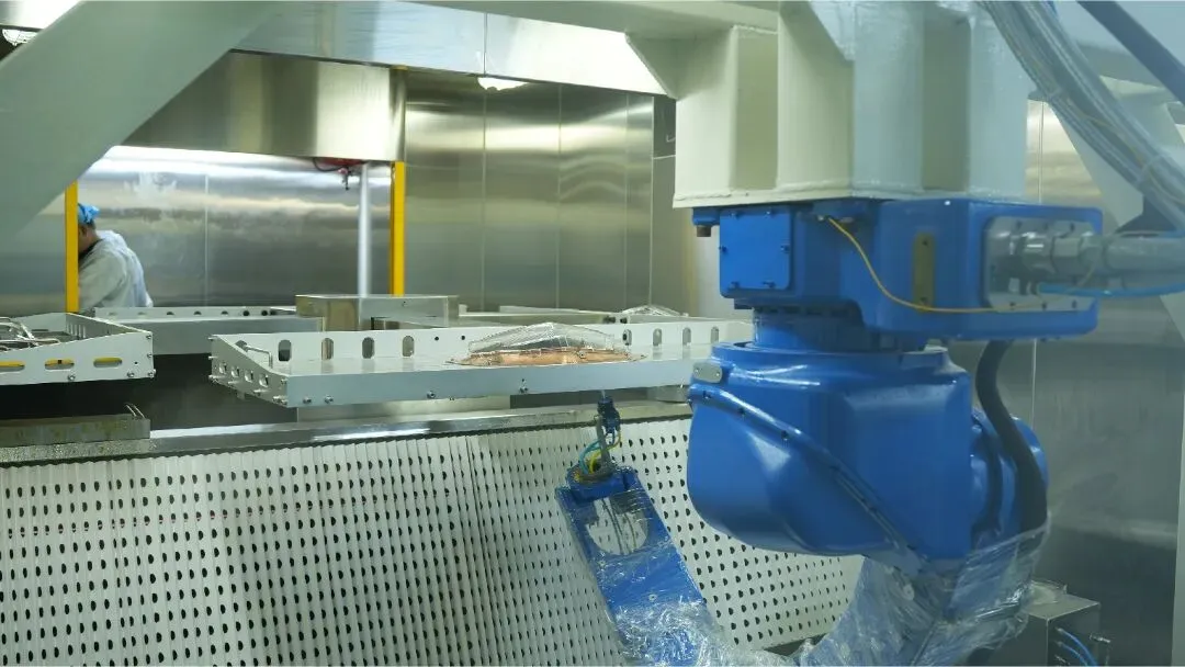 整个生产过程由机器人转件和机器人喷涂,真正实现了生产自动化和智能化。