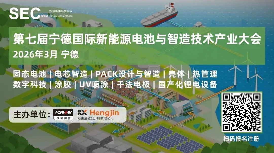 第七届宁德国际新能源电池与智造技术产业大会将于2026年3月在宁德举办,本届大会将重点专注于固态电池技术、电池电解质、电芯智造、电池壳体、电池设计与PACK集成、电池热管理、电池涂胶工艺、干发电极、UV喷涂技术及国产化锂电设备发展等热点话题展开。