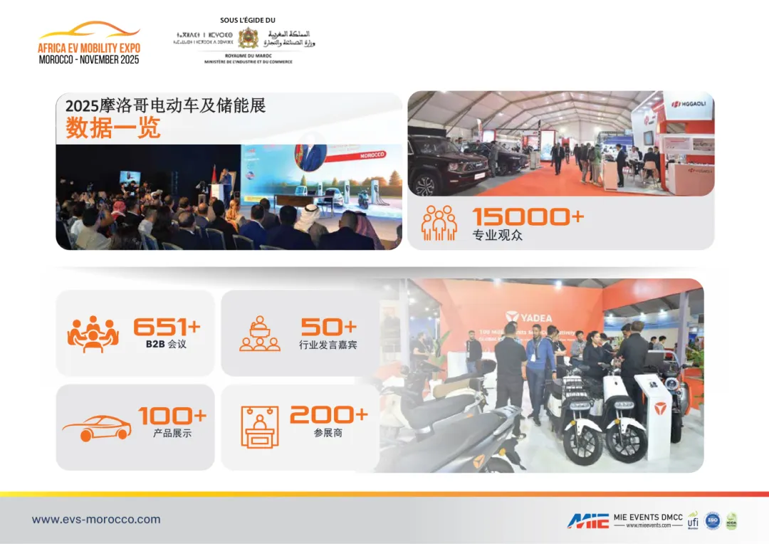 摩洛哥电动车及未来出行展(EVS Morocco 2025)由知名展览主办方中东国际展览集团(简称MIE集团)主办。此展会旨在为新能源汽车相关制造商提供一个展示与交流的平台,同时促进行业间的交流与合作,共同推动新能源汽车在非洲地区的持续发展,开辟了中国企业“以展团形式”赴中东非参展之先河。
