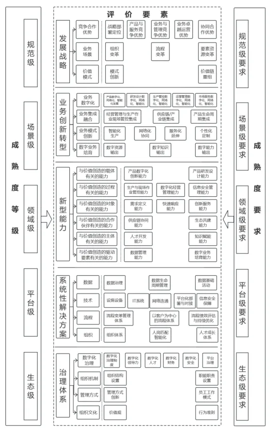 成长级是指企业数字化转型开展了部分试点,并取得了一定的成效,企业能够从战略、组织、技术等多个方面为数字化转型提供基础支撑,其主要特点是数字化转型开展了部分试点,在一些业务场景得到了初步应用。系统级是指数字化转型在企业内部得到了规模化推广,并取得了明显成效。在数据和平台支撑下,企业产品、业务、管理、新型商业模式等数字化转型实现了有机协同,其主要特点是数字化转型在企业内部实现了大规模推广,各个板块之间实现了有效协同。