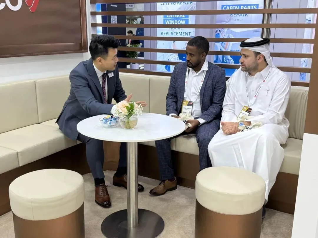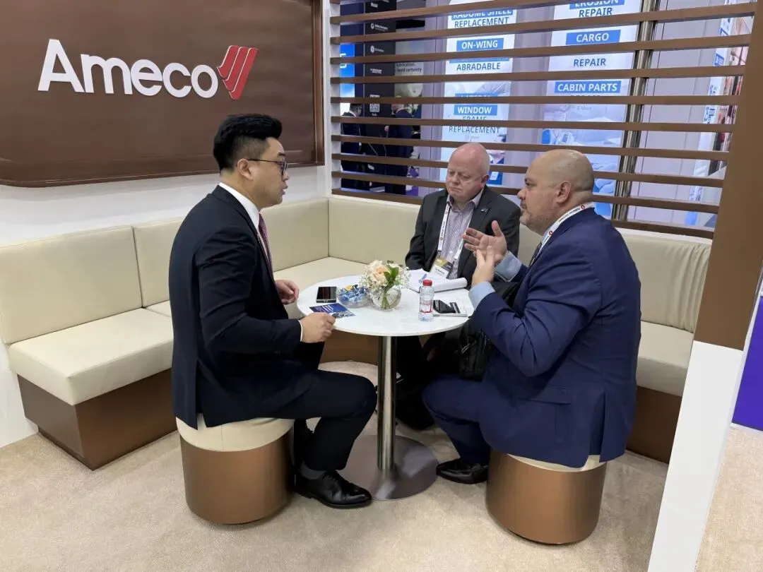 展会期间,Ameco市场与销售部人员与卡塔尔航空、阿塞拜疆航空、Geosky航空、中亚航空、索蒙航空、乌兹别克斯坦航空、Qanot Shark航空、南风航空、MGA航空、ACT航空、DHL和冰岛航空等客户,分别就航线维修、飞机机体大修、发动机大修、APU大修、起落架大修、附件修理、内饰改装等领域展开了讨论或洽谈,通过充分了解客户需求,积极探索合作机会。