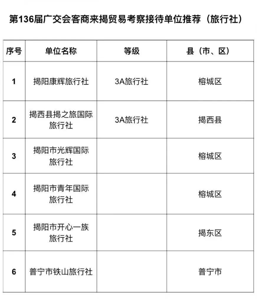 1.揭阳康辉旅行社(3A旅行社)