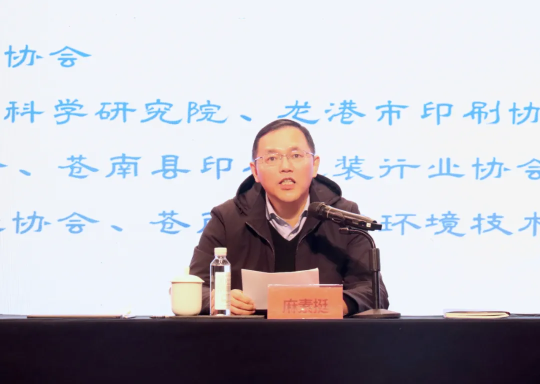 会上,温州市生态环境局副局长麻素挺作政策解读与工作部署。他重点阐释了温州市废气治理相关政策要求,明确表态全市将以最严格的标准、最有力的举措,全面从严抓好企业废气治理工作,坚决守住生态环境底线,持续改善区域空气质量。麻素挺说,龙平苍区域印刷行业呈现微小企业多、分布散,废气排放点位杂、治理能力弱的特点,为整体治理工作带来诸多挑战。他强调,只要有政府主导、企业主体、第三方治理机构、行业协会等多方力量同心同向、携手共进,凝聚共识、汇聚力量,就一定能够攻坚克难、按时保质完成治理任务,推动行业绿色高质量发展。